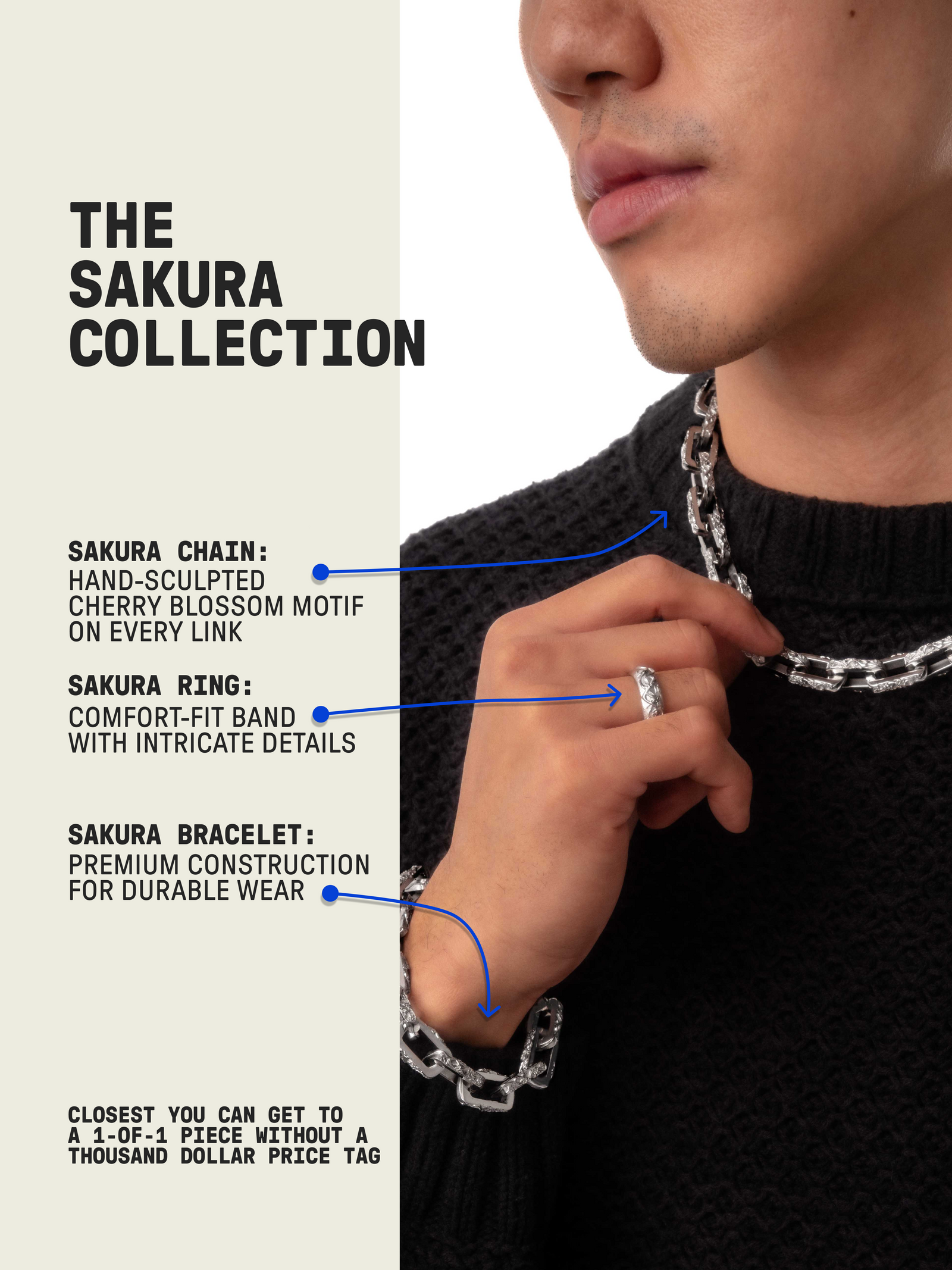 Luxury reimagined, revamped & redesigned for 2026. Every link features a hand-sculpted cherry blossom motif, carefully polished by hand for maximum shine while retaining every intricate detail.